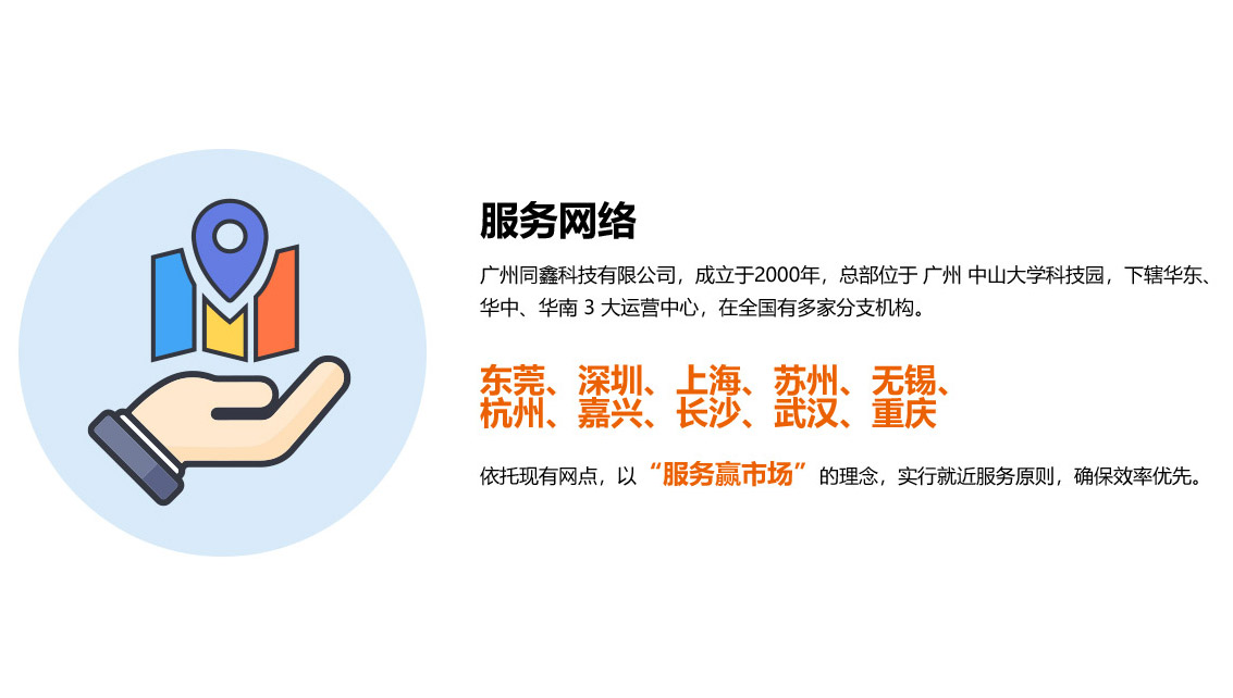 地區分布:東莞 ● 廣州 ● 深圳 ● 杭州 ● 上海 ● 蘇州 ● 無錫 ● 武漢 ● 長沙●東南亞