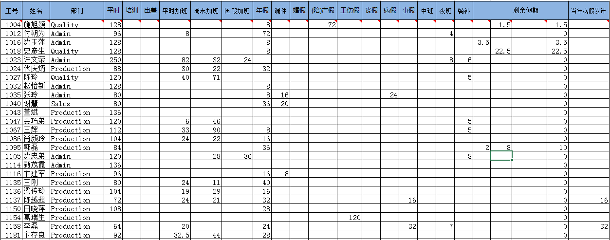 3、多張報表,滿足多方面需求(多樣和實用的報表能提升HR的工作效率,由于每個企業對數據的要求不同,將不同的數據分類到不同的表格中,便于HR的查詢及使用,通過不同的顏色將不同的狀態標記,讓HR直接可使用考勤報表,無需二次加工。)