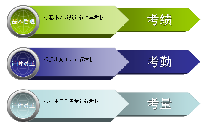 企業發展,人才是關鍵,而如何借助人力資源管理系統助力人力資源管理部門提高把好企業用人關,那用好人力資源管理系統就至關重要了,一般人力資源管理系統側重的多為事務層次的數據處理,多為對人員工作時間(考時),計件數量(考量),KPI評比(考績)作手,而此三個層次的考核按以下層次來劃分
